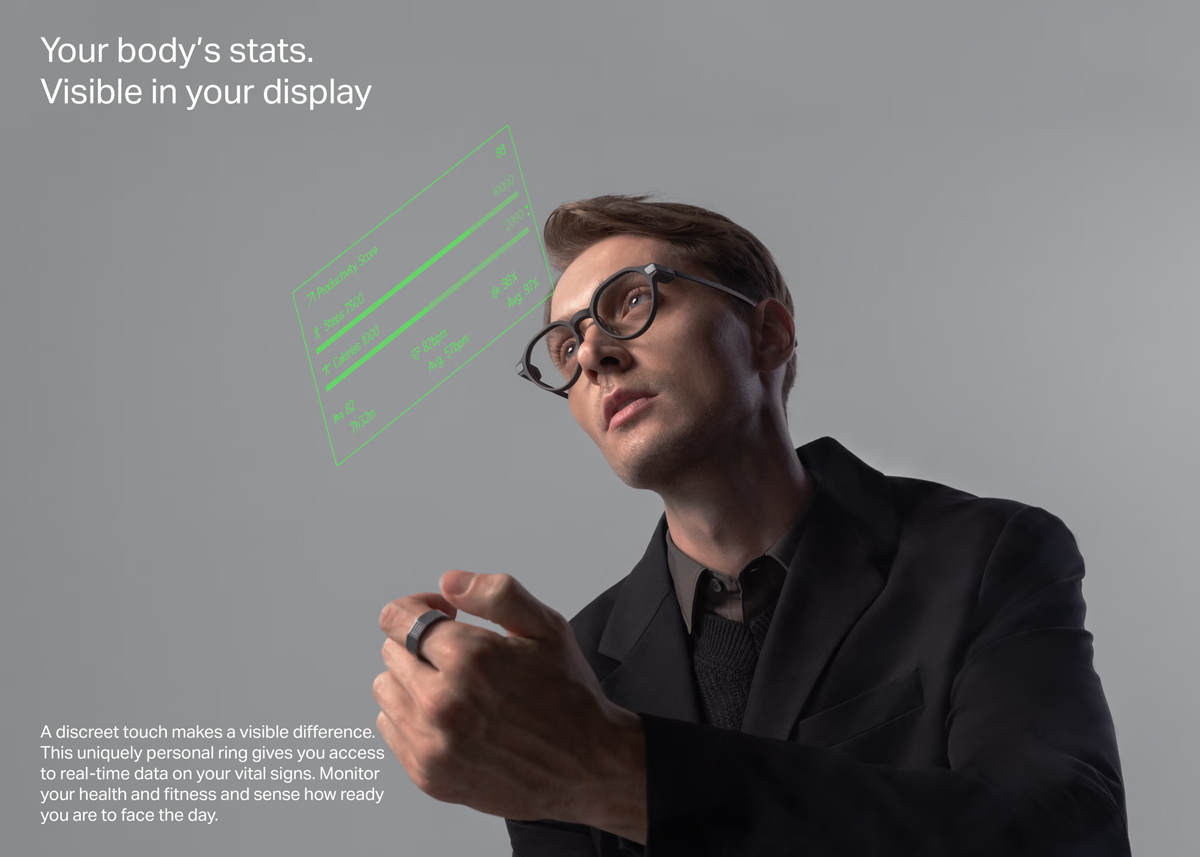 - รูปทรง Crown shape (ทรงมงกุฎ) พร้อมสลักโลโก้ Even Realities บนผิวแหวน