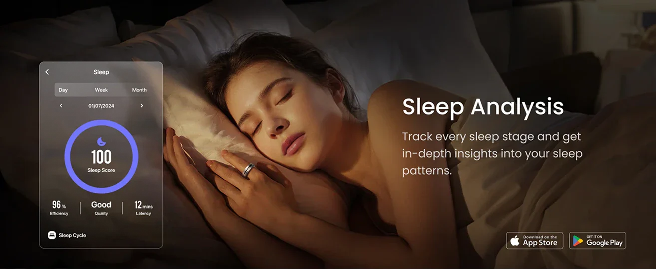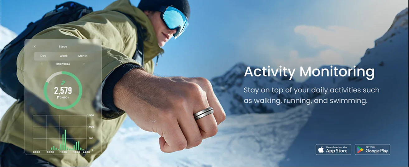 สมาร์ทริงอัจฉริยะสำหรับติดตามสุขภาพตลอด 24 ชั่วโมง ดีไซน์โอบรอบนิ้วอย่างพอดี น้ำหนักเบา ใส่สบาย เหมาะกับการใช้งานทุกวัน