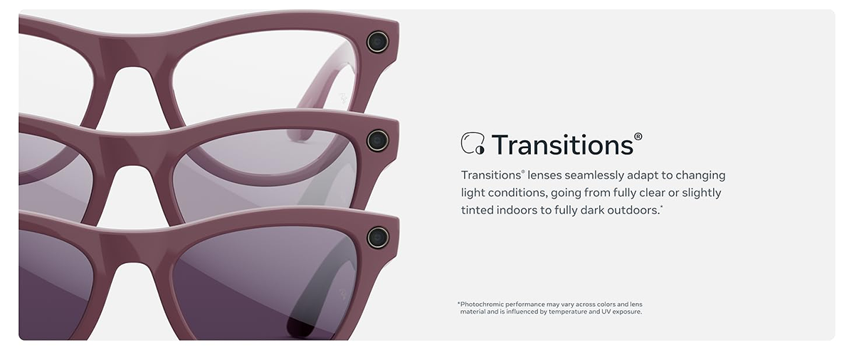 - Transitions (เปลี่ยนสีตามแสง) สลับใช้ indoor/outdoor บ่อย ๆ
