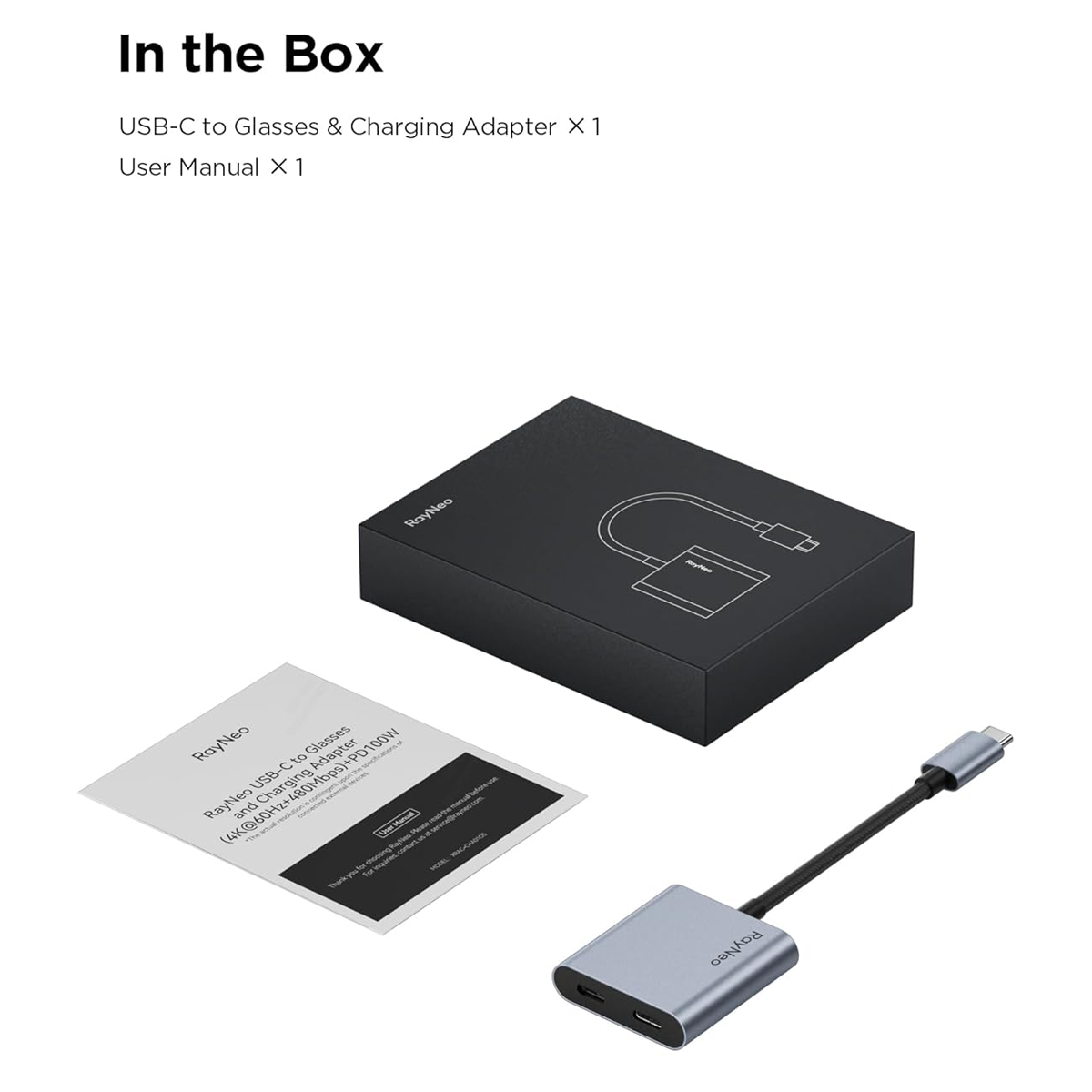 อะแดปเตอร์ USB-C ที่ออกแบบมาเพื่อใช้งานร่วมกับ RayNeo AR Glasses โดยเฉพาะ รองรับทั้งการส่งภาพความละเอียดสูงและชาร์จไวในเวลาเดียวกัน เหมาะสำหรับเกมเมอร์ นักดูหนัง และคนที่ต้องการจอใหญ่พกพา