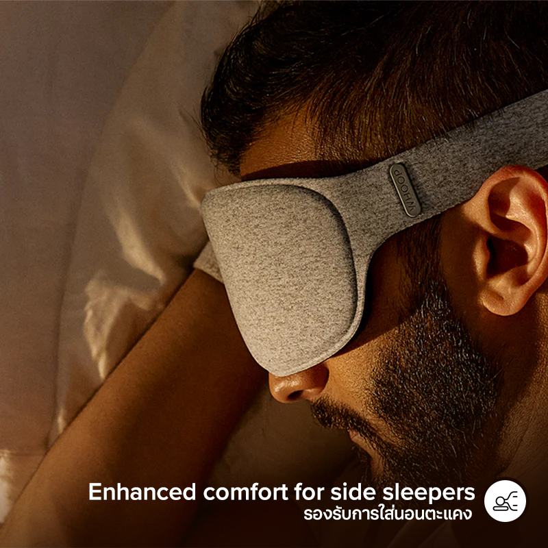 - ดีไซน์น้ำหนักเบาและกระชับ รูปทรงโค้งรับกับใบหน้าและดวงตา ช่วยลดแรงกดทับ แม้ในท่านอนตะแคง