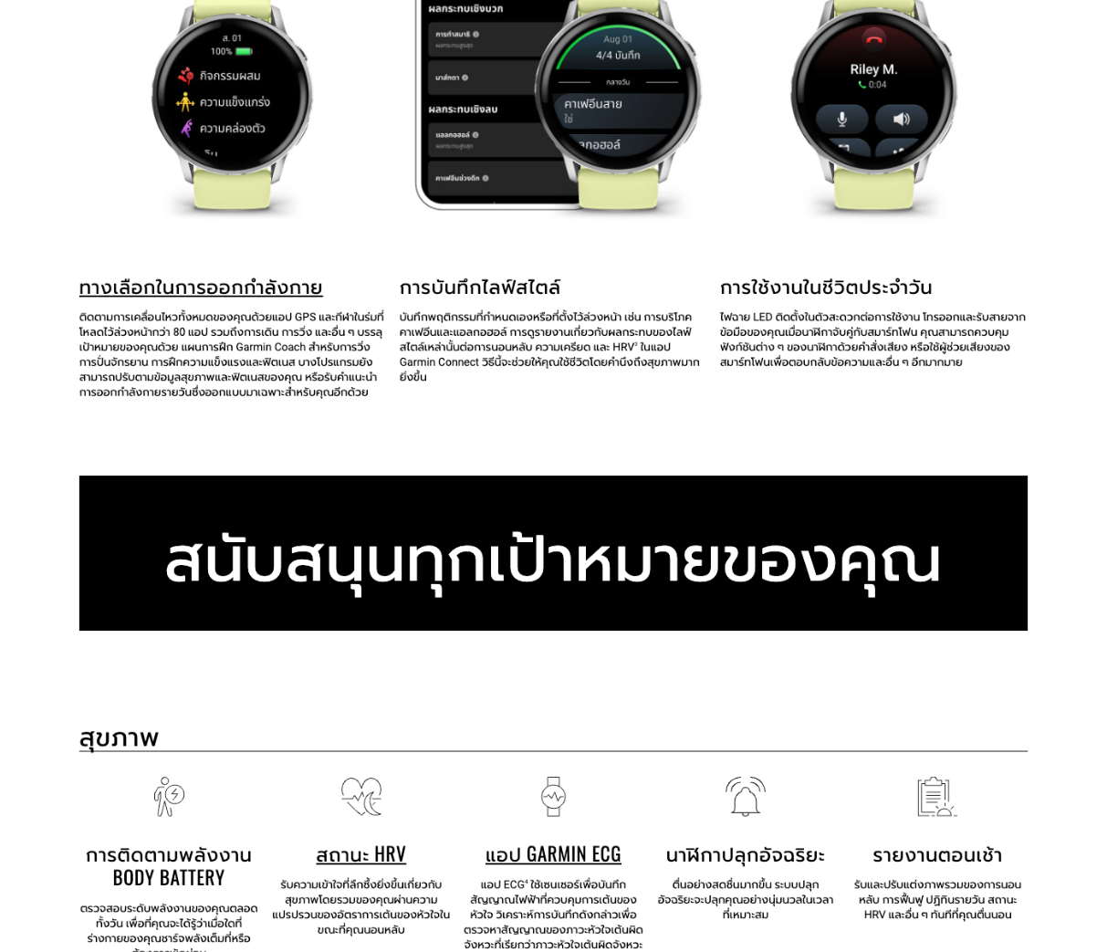 - Health Status ตรวจสอบค่าต่าง ๆ เช่น HRV (Heart Rate Variability), HR (Heart Rate), อุณหภูมิผิวหนัง