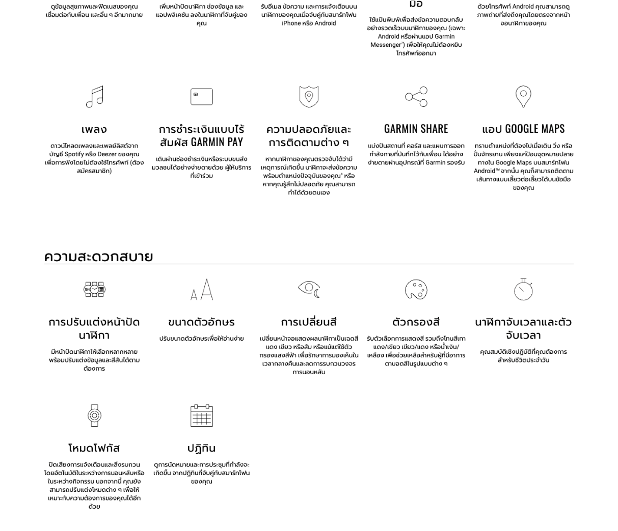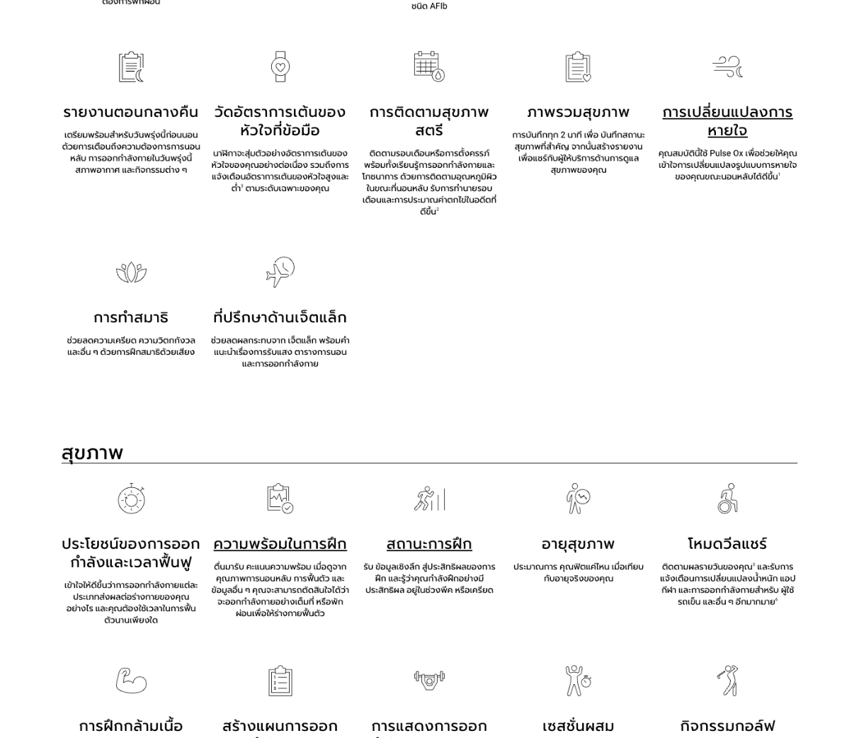 ความสามารถเซ็นเซอร์ | วัดอัตราการเต้นของหัวใจ (ชีพจร), วัดออกซิเจนในเลือด ,GPS (ติดตามเส้นทาง) |