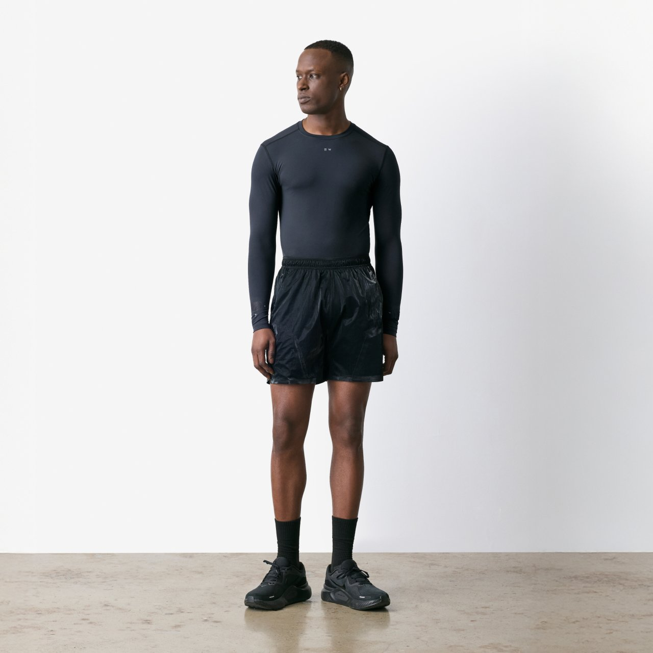 โครงสร้างกางเกงใช้ สองชั้น (Dual-Layer Construction) โดยชั้นในเป็น Compression Short ที่ยืดหยุ่นสูง ช่วยกระชับและรองรับการเคลื่อนไหว ส่วนชั้นนอกเป็นผ้า High-Luster Woven Nylon ที่ให้ทั้งความยืดหยุ่นและโครงสร้างที่แข็งแรง